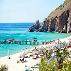 Ky Co Beach in Binh Dinh is a natural masterpiece with its golden sands forming a soft, curved embrace around the clear, turquoise waters. Located at the base of Phuong Mai Mountain, about 20 km from Quy Nhon, Ky Co retains its pristine beauty, making it the perfect place to enjoy the fresh air and stunning views of the surrounding mountains and sea. The beach offers fine white sand, a variety of uniquely shaped rocks, and breathtaking coastal scenery. The sea here shows two distinct colors: a light blue near the shore and a deeper blue further out. Visitors can immerse themselves in the refreshing water, relax in natural seawater pools, or watch schools of tiny fish swimming below the surface. Two rock formations rising from the water create a calm bay area, ideal for relaxing and soaking in the views. Ky Co is also a paradise for photography, with every angle providing inspiration. From the cliffs, you can enjoy panoramic views of the lush blue sea and sky, creating unforgettable memories. Visitors can also indulge in local seafood specialties like crab, steamed squid, and grilled shellfish. Another highlight is the beach’s affordable, spontaneous tourism services. Ky Co Beach is family-friendly, especially for children who can enjoy playing in the shallow, natural pools that are both safe and fun. When the tide recedes, beautiful natural caves appear, inviting exploration. Guests can opt to stay overnight by camping on the rocks or in dry caves, experiencing the serenity of nature. Travelers can reach Ky Co by boat from Quy Nhon or by taking a motorbike to Eo Gio and then a short canoe ride. The overland route also offers scenic views along the Phuong Mai Mountainside. As an unspoiled destination, Ky Co offers a peaceful atmosphere, allowing visitors to connect with nature and experience the simplicity of a fishing village lifestyle. It has quickly become a must-visit spot, leaving every visitor with a desire to return to this heavenly coastal paradise.