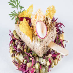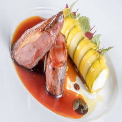 Foie gras combined with aszú wine from the famous Tokaj wine region is one of Borkonyha's signature dishes. This rich duck liver has a creamy and paper-thin texture with crispy outer grass. The restaurant's other standout is mangalica (known as the "kobe" of pork) – a Hungarian wild boar with tender meat, rich flavor, and a layer of fat interspersed like marble. The entrees are an assemblage of prized meat dishes such as lamb, roast quail and wagyu beef, with fresh seasonal vegetables. The daily specials written in chalk on the blackboard are also remarkable.