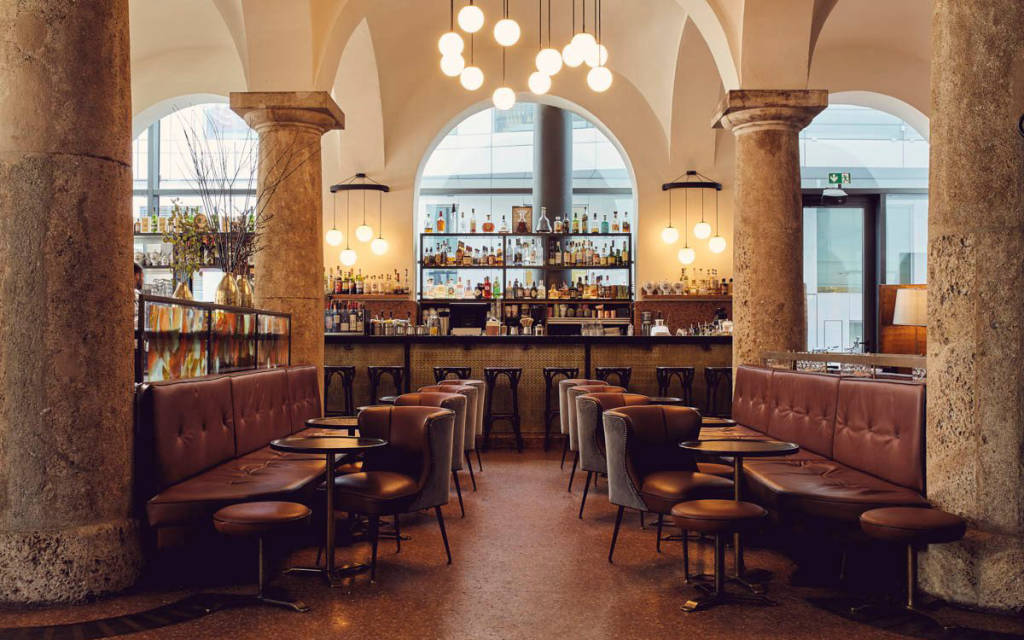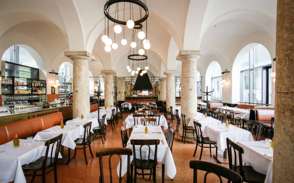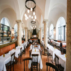 Once the site of a royal residence, today's Brenner restaurant is filled with pretty young stuff with its chic location and impressive vaulted and pillared interior. There is an interior for 450 people inside and out in the courtyard and a beautiful terrace overlooking the Bavarian Opera. The restaurant has a bustling atmosphere like German brasserie, where terazzo floors and wrought iron elements help to dampen the noise.