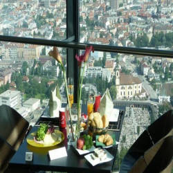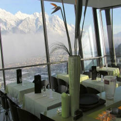 With a floor-to-ceiling glass facade, the restaurant in the Bergisel ski tower invites guests to enjoy fine coffee in the romantic Innsbruck setting. Here, visitors also enjoy quintessential cuisine from all over the world. Bergisel sky with a capacity of 180 is also a suitable place to organize special events.