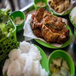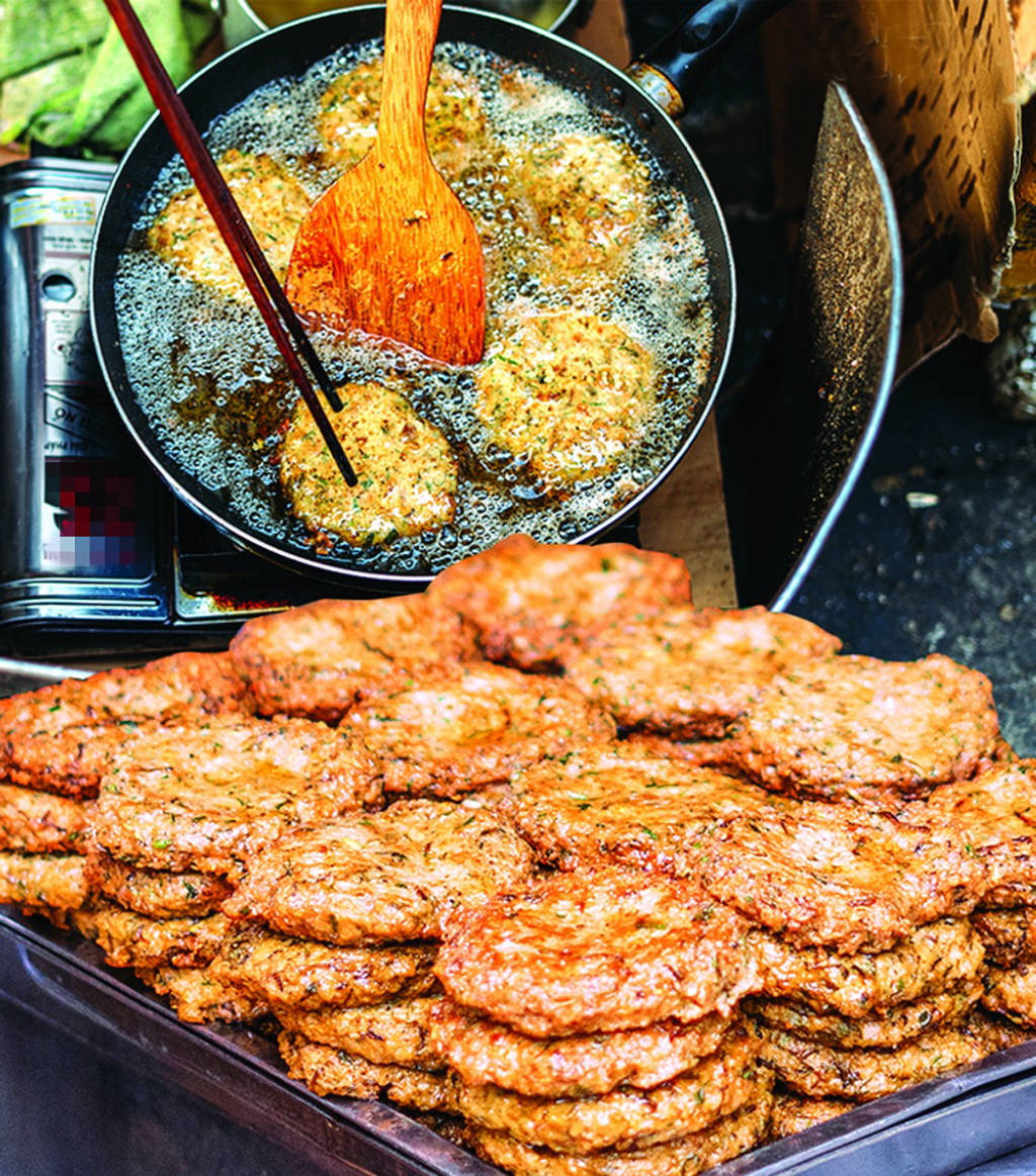 The frying of Rooi is different from place to place, there are places for Rooi after mixing the spices to fry it, but that way it will not taste good, it will cook unevenly and easily burn, when eating, it will lose its greasy taste. Wanting to be delicious, the chef usually steams the rolls first, then fry them in an open hot pan, simmer, wait until the rolls turn yellow, both are fine. Cha Roi can be served with rice or vermicelli. To make it more delicious, you can eat it with raw vegetables, herbs and indispensable bowl of sweet and sour sauce with garlic and chili flavor.