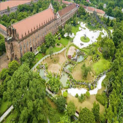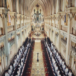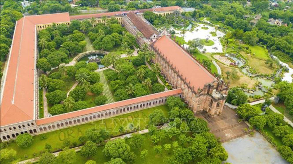 The outer area of the monastery is adorned with "punctured" paintings depicting Jesus, the Saints, people carrying crosses and praying. Inside the cathedral is a large series of corridors designed to ensure that they always receive natural sunlight, contributing to the elegant beauty of the round columns, decorative motifs and symbolic reliefs. overview and high image, creating a dignified and extremely cozy space. Most of the monastery's designs are inspired by the famous Gothic architectural style, using raw, unpainted red brick as the main material. And the artistic culmination of this architectural work is the 21-meter-high dome inside the cathedral, giving those who enter here a feeling of relaxation, opening their hearts to the sacred God.