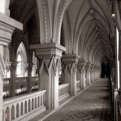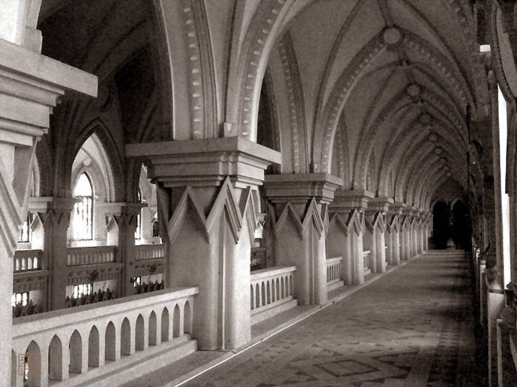 Nestled in a quiet mountainous area, the monastery is built in the mainstream Gothic style with a large wall surrounding it up to 0.6 meters thick, the column area up to 1.2 meters thick to ensure warmth in winter. and cool in the summer. The most prominent feature of this architecture built on the West-East axis is the large solid columns designed into the shape of small symmetrical towers; The walls are harmoniously decorated, adorned with windows designed in the typical Gothic style (divided into 2 floors above and below, inside is wooden glass).