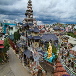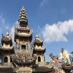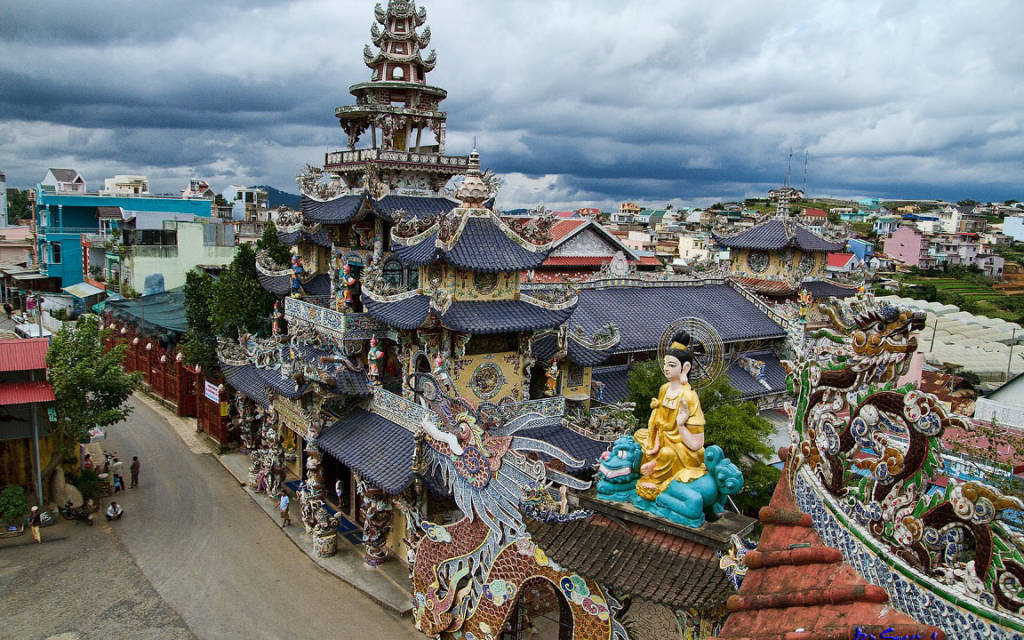 The temple is the top destination when tourists come to Da Lat, the temple owns a very unique architecture created by hundreds of pieces of bottles and crockery, so it is often called Ve Chai Pagoda. The pagoda was built in 1949 and completed in 1952. In 1990, the pagoda was presided over by Venerable Thich Tam Vi and the Buddhists contributed to rebuild the entire pagoda as it is today. People have taken hundreds of tons of porcelain here and built to create a beautiful work like now. The temple owns many Vietnamese records such as: