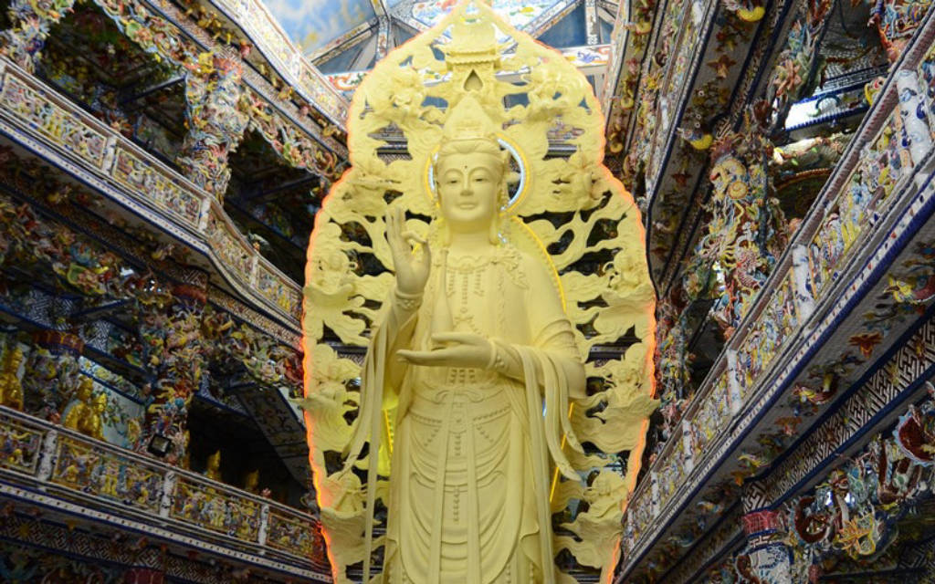 - The tallest concrete indoor Buddha statue in Vietnam. The statue of Bodhisattva Avalokitesvara is 17m high, in the temple is 3 floors high. Around the main statue are 324 Quan Am statues 3.7m high