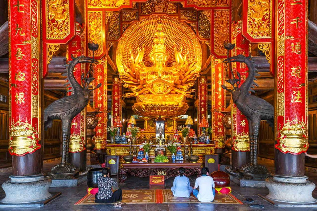 Bai Dinh Pagoda emerges on the tourist map of Ninh Binh province as a famous spiritual tourist destination attracting tourists from all over the country and abroad. The temple is located in the heart of the ancient capital of Hoa Lu with the age of more than 1,000 years through the feudal dynasties from the Dinh, pre-Le to Ly dynasties, when Buddhism was very developed and played an important role in spiritual life. god of the people. Bai Dinh Pagoda is known by Buddhists for its sacredness and typical and impressive architectural features of a complex including the old pagoda area and the new pagoda built in 2003. Located at the gateway. To the west of the entrance to Hoa Lu ancient capital, stretching on the mountainside of Trang An mountain range between immense valleys of lakes and rocky mountains, Bai Dinh Pagoda attracts visitors by its unique and monumental architecture with a treasure trove. Magnificent tower and peaceful, beautiful landscape captivate people.