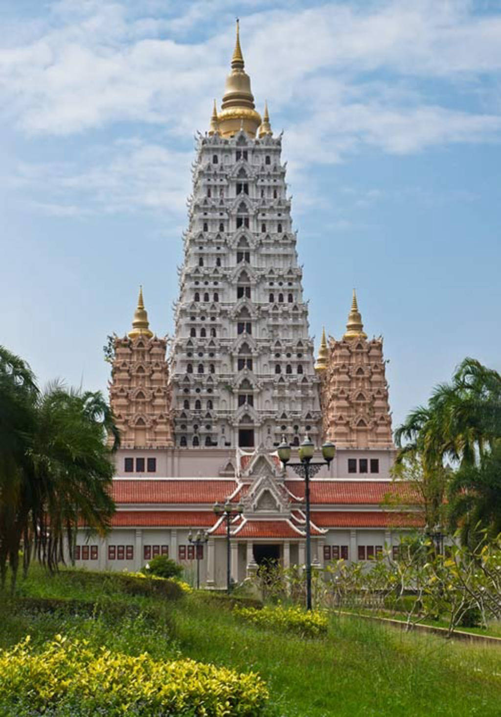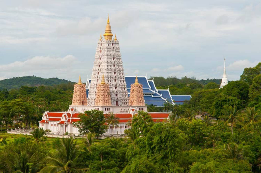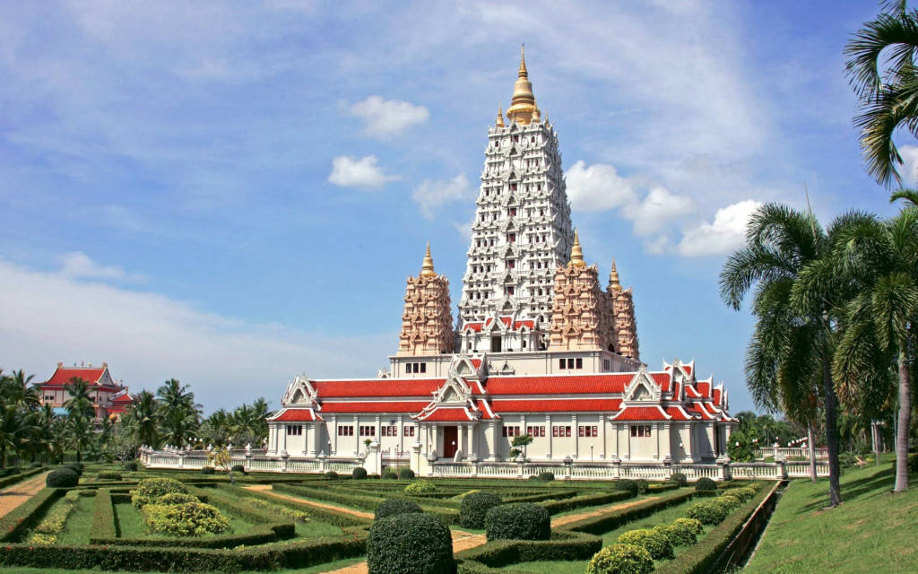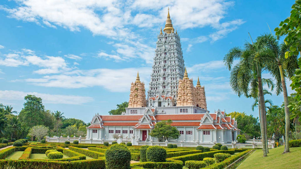 The main building of Wat Yansangwararam or Wat Yan for short, is known for its modern design and is built in a very different style than most Thai temples. A pavilion called a mondop or mandapa contains a replica of Buddha's footprints. Inside a large white stupa (a Buddhist stupa) a number of relics of the Buddha and his followers are kept.