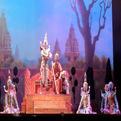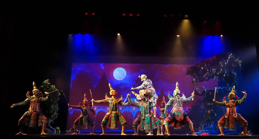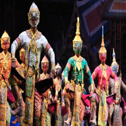 Khon Masked Dance Drama is a performance art that combines elements of music, vocals, literature, dance, rituals and handicrafts. Khon performances include graceful dance movements, musical instrument performances, singing and splendid costumes. It depicts the glory of Rama, a hero and incarnation of the god Vishnu, who brings order and justice to the world. Many parts of the show depict Rama's life. The most famous is the part "Hanuman Chankamhaeng" which tells about Rama's battle with the army of Thosakan, king of the giants. Rama won the victory with the help of the famous white monkey warrior Hanuman. This section features 60 performers, with specially designed elaborate costumes.