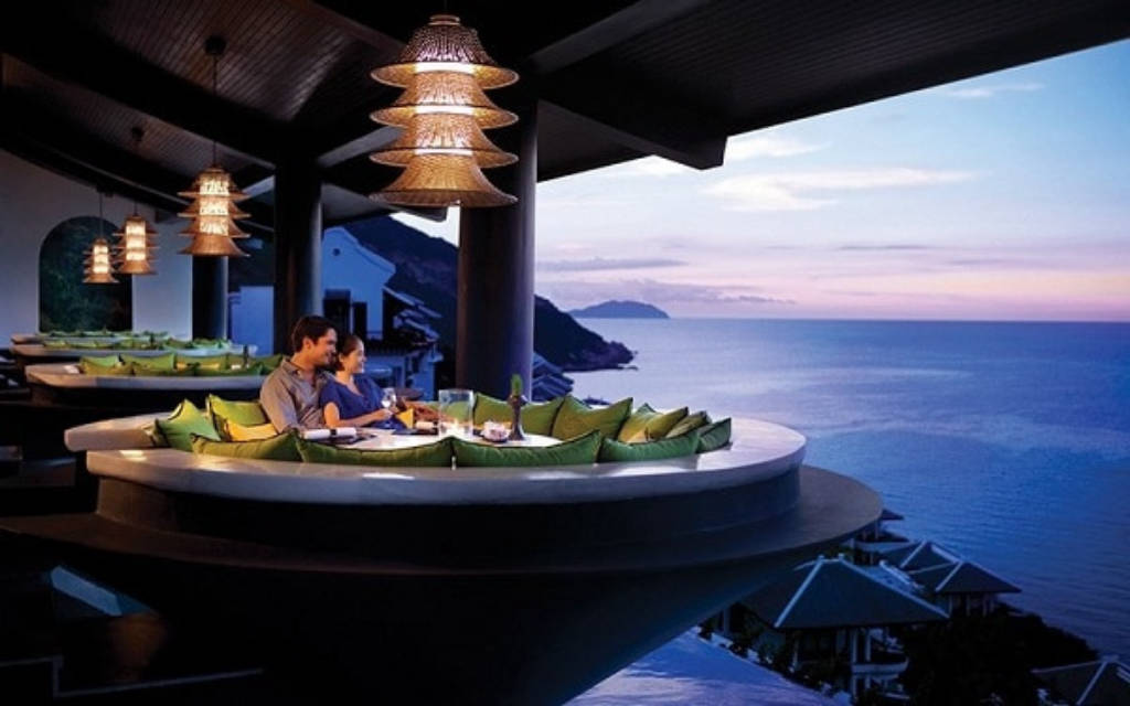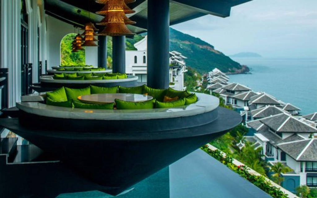 Citron restaurant is a masterpiece of architecture. Located on the top floor of the most luxurious resort in Da Nang, Citron brings a special impression to visitors with its unique space. One of the great things about the architecture of this place is the dining area in the shape of a Vietnamese conical hat, which is suspended 100m above sea level. As the name is called Qua Chanh, the restaurant has the main colors of yellow and green along with motifs that simulate the traditional artworks of the ancient Vietnamese people, the dining chairs are inspired by the golden day of the Lord. Nguyen in the past