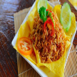 Pattaya fried rice is a Malaysian dish, made by wrapping chicken fried rice in an omelette bag. This unique dish consists of chicken fried rice in tomato sauce, wrapped in a soft omelette. In fact, fried rice in Pattaya is excellent for many reasons. It is suitable for any meal of the day. An omelette with every bite of rice really makes it perfect. It is also known as Nasi Goreng Pattaya.