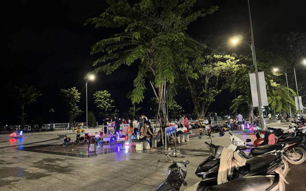Moreover, the park features spaces dedicated to families and children, with safe playgrounds where kids can have fun. For those who enjoy tranquility, sitting on the stone benches and watching the boats pass by on the river while feeling the cool breeze from the Hau River is a wonderful way to unwind.