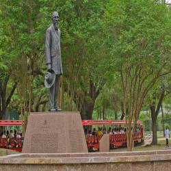 On May 16, 1981, Hermann Park philanthropist - George Hermann was honored with a bronze statue, nearly 3 meters high, created by sculptor Lonnie Joe Edwards. The statue is placed on the corner of Cambridge and Fannin streets.