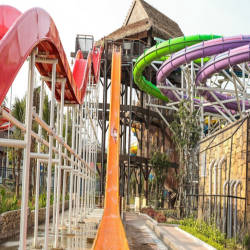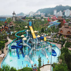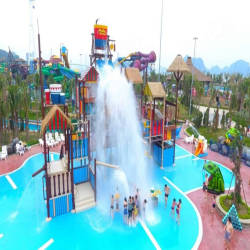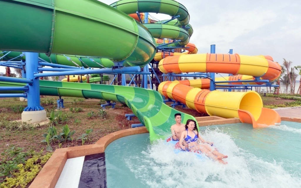 Typhoon Water Park is located in Bai Chay area near the Queen cable car area. If you come down from Hanoi, when you go through the welcome gate of Tuan Chau, go another 200m to meet the fork, turn right into Hoang Quoc Viet street, then go straight to the roundabout, turn 4, turn into Ha Long street, go straight to the water park. lie on your right hand. Due to the winter weather in the North of Vietnam, the park closes in winter and reopens to welcome visitors starting in early April, ending in early October. The summer months are the park's time. The most crowded, a lot of guests from all over come here to have fun.
