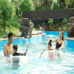 Typhoon Water Park was built on an area of 20ha, put into operation in 2017. The campus is divided into 3 main areas suitable for all ages to come here and have fun such as family area, area. children and finally the adventure zone with thrilling games full of attraction. The children's section is a very safe place designed for children under 6 years old, children can play comfortably, but parents can rest assured to rest and relax. Because in the area, there are lifeguards who are always watching the children playing. Next to the family area is a place for family members to play together, to overcome small challenging games together. Finally, the highlight of the park is the adventure game area. There are 12 thrilling water games that attract many young people to play. All equipment and game systems are imported and tested according to European standards, so it is absolutely safe for players. Typhoon Water Park also attracts visitors by the natural space filled with green trees, skillfully trimmed and carefully taken care of, creating beautiful miniatures for visitors to take pictures. Inside the water park, there is also a diverse restaurant system, serving all the needs of visitors with grilled dishes, fast foods to help visitors replenish energy after having fun.