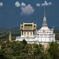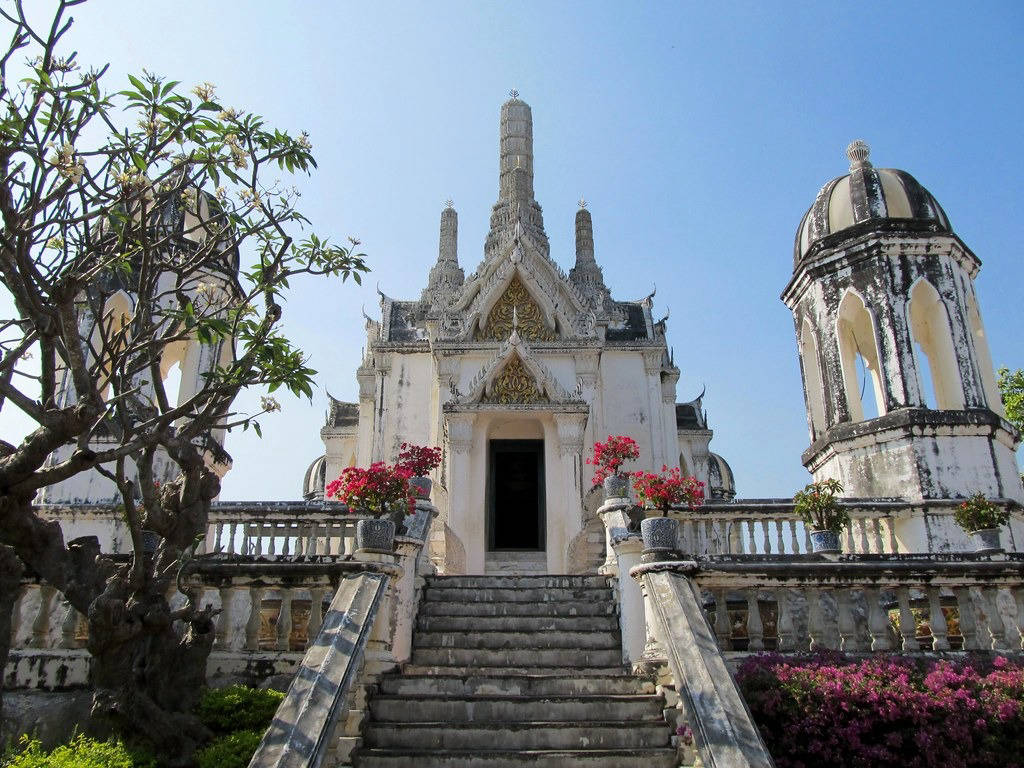 The palace consists of three groups of buildings on the western, middle and eastern peaks. The western hill contains the royal residential complex and overlooks the surrounding hills and Phetchaburi town. The eastern hill houses Wat Maha Samanaram and Wat Phra Kaeo, similar to the Temple of the Emerald Buddha in Bangkok. Walking among the hills is a very wonderful activity. The hill in the middle has a large stupa called Phra That Chom Phet, which is said to house the relics of the Buddha.
