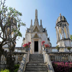 The Central Peak has a 40 meter high white stupa called Phra That Chom Phet. This stupa is said to contain relics of the Buddha. This peak is a great place to see the Royal Palaces on the West Peak and Wat Phra Kaew Temple on the East Peak.