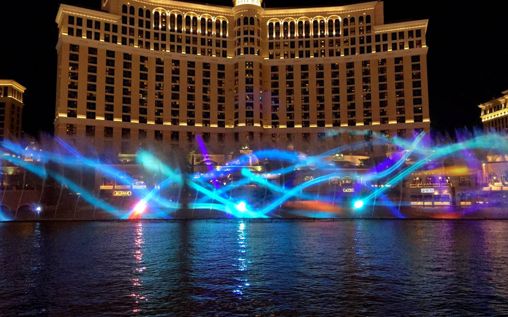 Two minutes before the water show started, the sprinklers started breaking the water and the hotel tower lights turned purple (typically), or red, white, blue for some versions. music. They combined a network of pipes with more than 1,200 nozzles to create a fountain show that was coordinated with about 4,500 light bulbs. The fountain show is choreographed to a variety of music from classical works, opera to popular Broadway hits and songs. Designers, musicians and performers were invited to set the fountain's music. All create domestic performances from delicate, gentle to monumental, vibrant, each showing a distinct uniqueness.