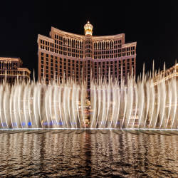 The Bellagio Fountain was the largest fountain in the world when it first opened but was surpassed by the Dubai Bay and Okada Manila fountains in 2010 and 2017. It remains one of the iconic landmarks, respectively. of the city of Las Vegas not only for tourists but also locals.