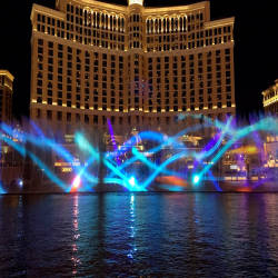The Bellagio Fountain is an extensive waterworks whose performances are choreographed with spectacular displays of water, light, and music. The fountains are estimated to cost $40 million to build and they were designed by WET - a design firm specializing in innovative fountains and architectural features of water. The fountain can be seen from various locations, including from the street and neighboring structures. However, seeing the fountain directly will be an unforgettable experience during a trip to Las Vegas for anyone.