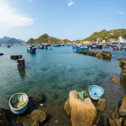From Ba Ngoi port in Cam Ranh, you can take a wooden boat or canoe to go to Binh Ba island. The wooden train takes about 45-60 minutes and the ticket is 30,000 VND per person, the canoe is 100,000 VND and it only takes about 20 minutes to get to the island.