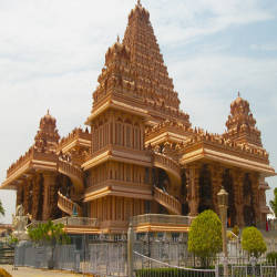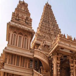 The temple is built of marble, boasting Dravidian and Nagara architectural styles - a fusion of North and South Indian architecture. One of the highlights is the 30.7m tall Statue of God Hanuman. In addition, there are statues of gods such as Maa Katyayani, Ram - Darbar, Maa Mahishasurmardini, Radha-Krishna, Laxmiji, Hanumanji, Shiv-Parvati, etc. This place has special celebrations with strong faith in religion. .