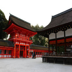 On the west side of the shrine is the shrine of "Kamo Taketsunumi no mikoto", the god who discovered ancient Kyoto and is considered the protector of Kyoto . To the east of the shrine is the shrine of "Tama-yori-hime no mikoto", the god of love and child rearing.