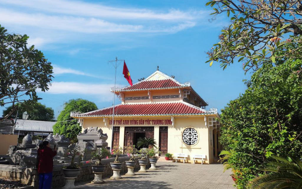 In 1964, the tomb was renovated, and the temple was added in 1972. The temple was completed in 1973 with traditional Eastern-style architecture, becoming a sacred place where people from all over come to offer incense and honor Trương Định’s contributions.