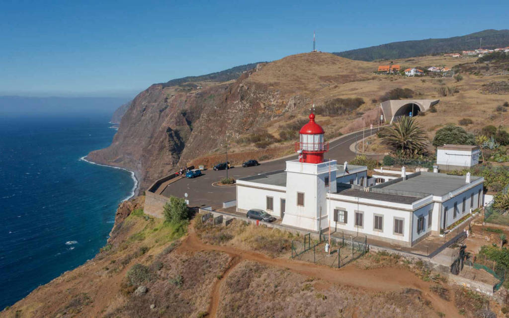 The lighthouse itself is perched on the dramatic cliffs of Ponta do Pargo, providing a commanding presence against the backdrop of the ocean. As visitors approach, they are greeted not only by the historic structure but also by the invigorating sea breeze and the rhythmic sounds of waves crashing against the rugged coastline.