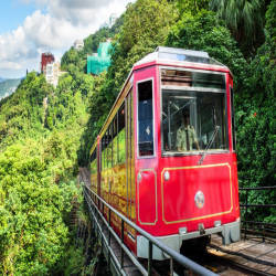 There are many ways to reach the top of Thai Binh, you can take a bus, taxi or even follow the "Hong Kong trail" if you love adventure; But one of the best experiences you shouldn't miss is getting ready for a journey on a special tram ride (called the Peak Tram in English) on a railway line that Hong Kong people pride themselves on being the steepest in the world. world, has been in business for more than 100 years (since 1888), transporting an average of nearly 11,000 passengers per day to the summit of this beautiful mountain. The journey will help you capture the unforgettable beauty of Cang Thom, you will be surprised when below you is a primeval forest sparkling with sunlight and far away are skyscrapers. modern and bustling harbor or on sunny days you will easily admire the eight majestic mountains of Kowloon City. The final destination of the journey is the display of the history of this amazing tram, and above it is the magnificent Peak Tower.