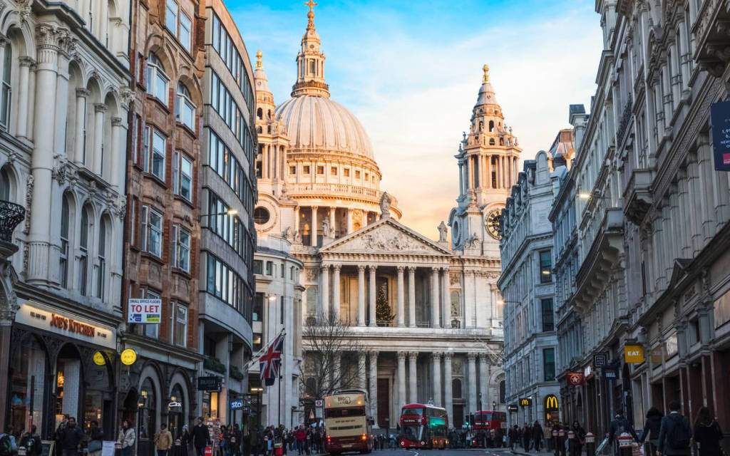Paternoster Square, the seat of the London Stock Exchange since 2004, is located on the hill, just north of St Paul's Cathedral.