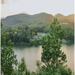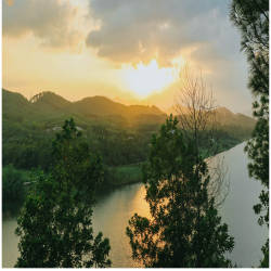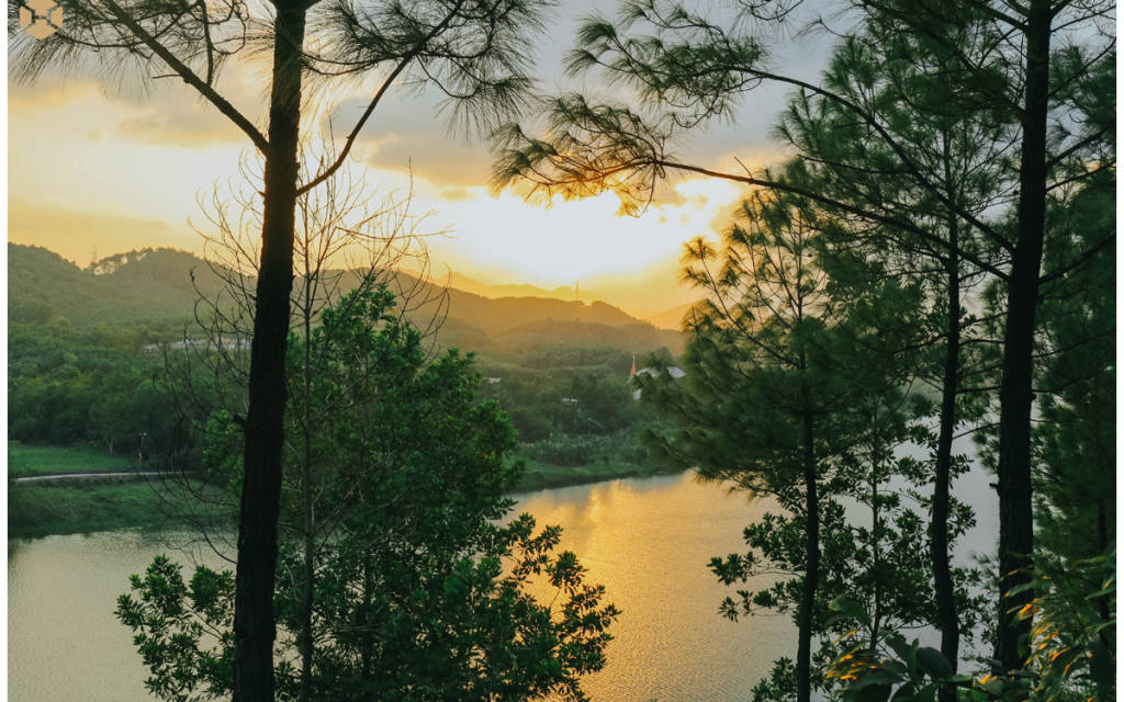 The best time to fully admire the majestic and poetic beauty of the mountains and rivers from Vong Canh hill is at dusk when sunset falls. In winter around 5pm and summer around 6pm, at this time the sun gradually disappears behind the mountains, the sky is dyed red on a dark purple background with yellow light, creating a yellow-orange color reflected in the space of mountains and rivers. This gentle, melancholy, contemplative beauty, once admired, will be hard to forget.