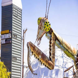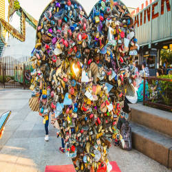 The entrance to the complex is marked by a huge metal sculpture depicting a praying mantis spewing fire from its antennae next to the Love Locket - a metal sculpture for allowing visitors to attach love locks to it.