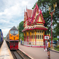 Relive Hua Hin's glorious past by combining your visit to the train station with Maruekhathaiyawan Palace, also designed in a similar style with open verandas, covered boardwalks and Beautiful decorative detail. It is possible to go back in time by taking the train from Bangkok to Hua Hin, a journey that takes about four hours compared to 2.5 hours by car, it will be an enjoyable trip for you.