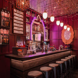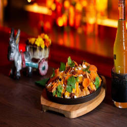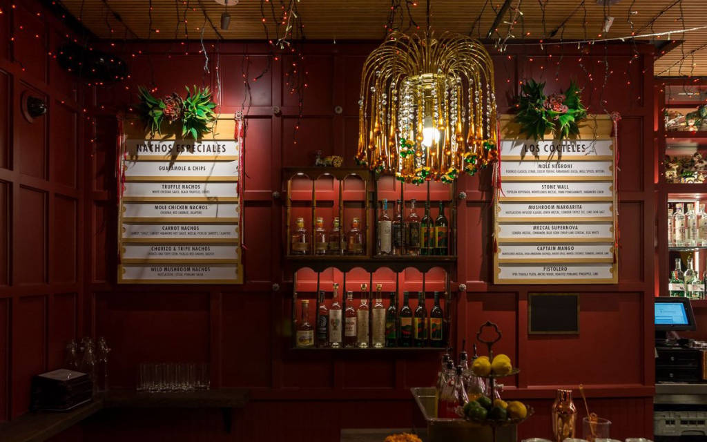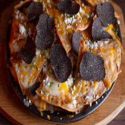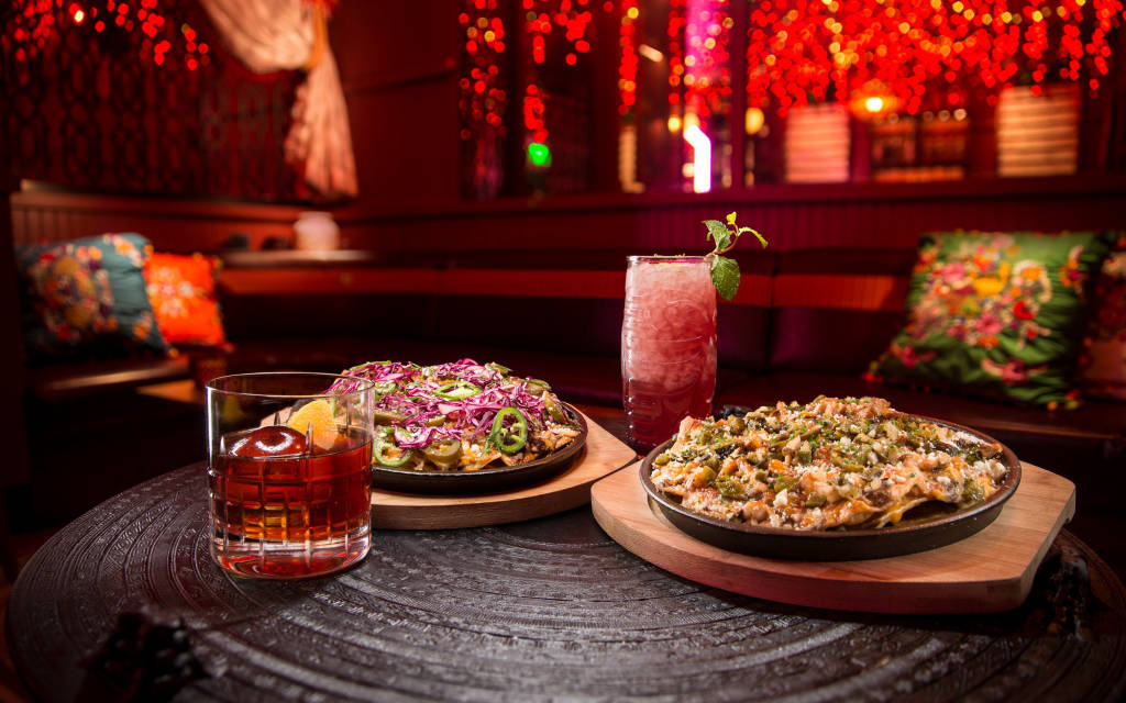 On the late-night snack menu, the bar's truffle nachos, as well as a carrot version with three spicy carrot variations, wild mushroom with puréed huitlacoche, and chorizo and tripe performances.