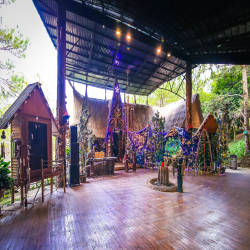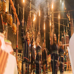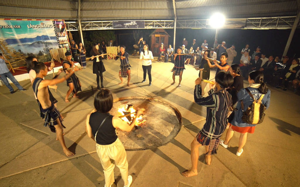 The Gong festival usually takes place from 90 minutes to 120 minutes, divided into two parts: the ceremony and the festival. The part of the ceremony takes place when the village head will conduct a ritual to pray to the fire god, this is a quite sacred ceremony, the village head will invite some tourists to join the ceremony. The prayers of the village head resound in the mountains to invite the fire god to return, the torch in the middle of the stage will burn, followed by dance performances to welcome the gods performed by ethnic girls and boys. . After the ceremony, visitors will listen to funny stories about the customs and festivals of the ethnic people here. They will explain more to you about the origin of the gongs and its significance in the rituals. The most fun and expected part of the festival is the festival, visitors will be immersed in the bustling dances, immersed in the sound of gongs, gongs and fiery dances of the compatriots. fragrant skewers of grilled meat and taste warm sips of wine. This will be an interesting and unforgettable program for visitors when coming to this dream city. In Da Lat, there are currently two places to organize Gong cultural exchange programs.