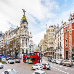 Gran Via is a bustling shopping center and nightlife spot. Like many places in Madrid, this street honors the past while still breathing the future: luxury fashion boutiques and international brands are housed in some of the most iconic heritage architecture. of Madrid.