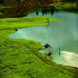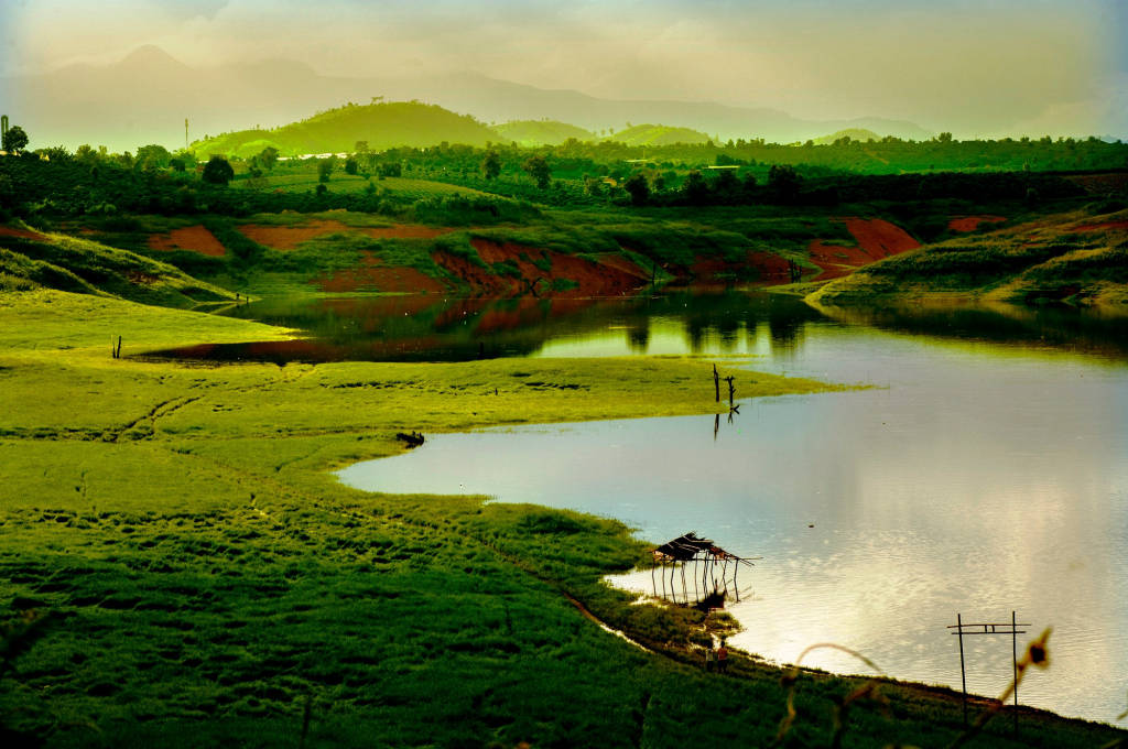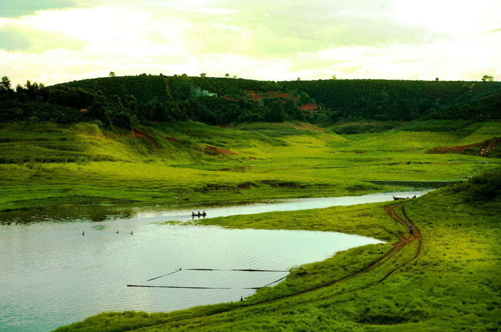Plei Krong hydropower reservoir was started construction in November 2003 and completed in May 2009, the reservoir has a storage capacity of about 145.52 million m3, with a route of nearly 17 km surrounded by primeval forests. , plants and small shrubs. Coming here, visitors will admire the green, calm beauty, clear water and clearly feel the delicate and graceful beauty that the hydroelectric lake brings. Moreover, if you visit the lake in the autumn (the season when the water rises), you will admire the lakebed of Plei Krong hydropower reservoir changing into a dreamy green color, with all kinds of plants and trees blending with the lake. The green gives nature lovers a new and emotional perspective. In this space, the experience of a canoe boat floating in the middle of the vast waves, zooming in to the distance to inhale the passionate, sweet aftertaste of the breath of heaven and earth here in the green landscape. It also makes visitors more relaxed and lighter in soul. In that journey of experience, sometimes visitors will encounter small streams weaving between the ravines and pouring into the lake like a hair stream of a certain mountain girl or sometimes visitors will encounter thin, dry tree trunks. , stretching out thin arms, standing quietly in the middle of the vast sky and water accidentally became the highlight for the lake bed, creating a natural and amazing beauty.