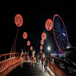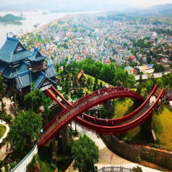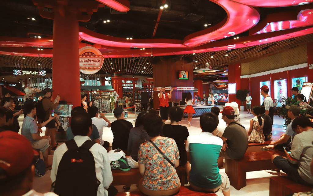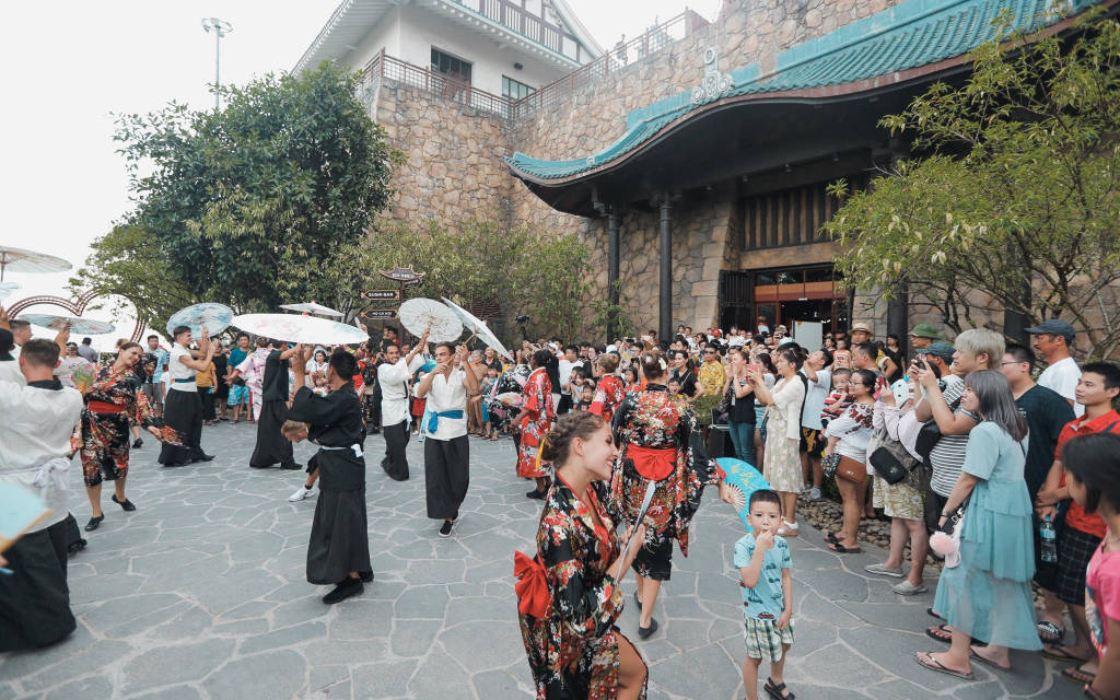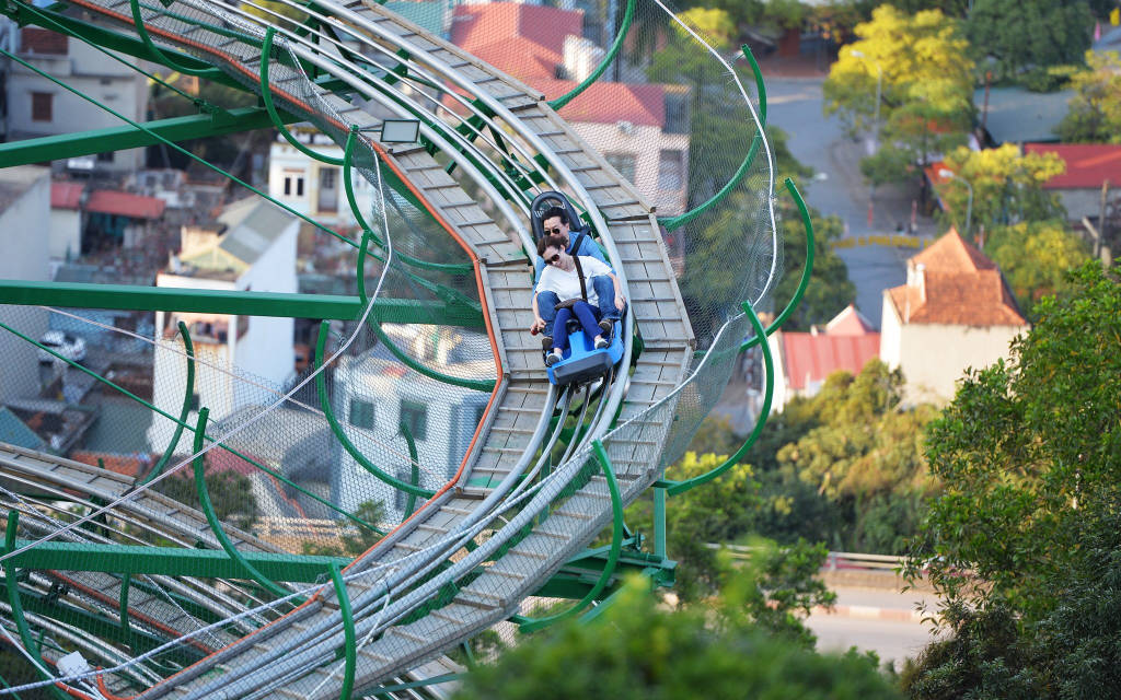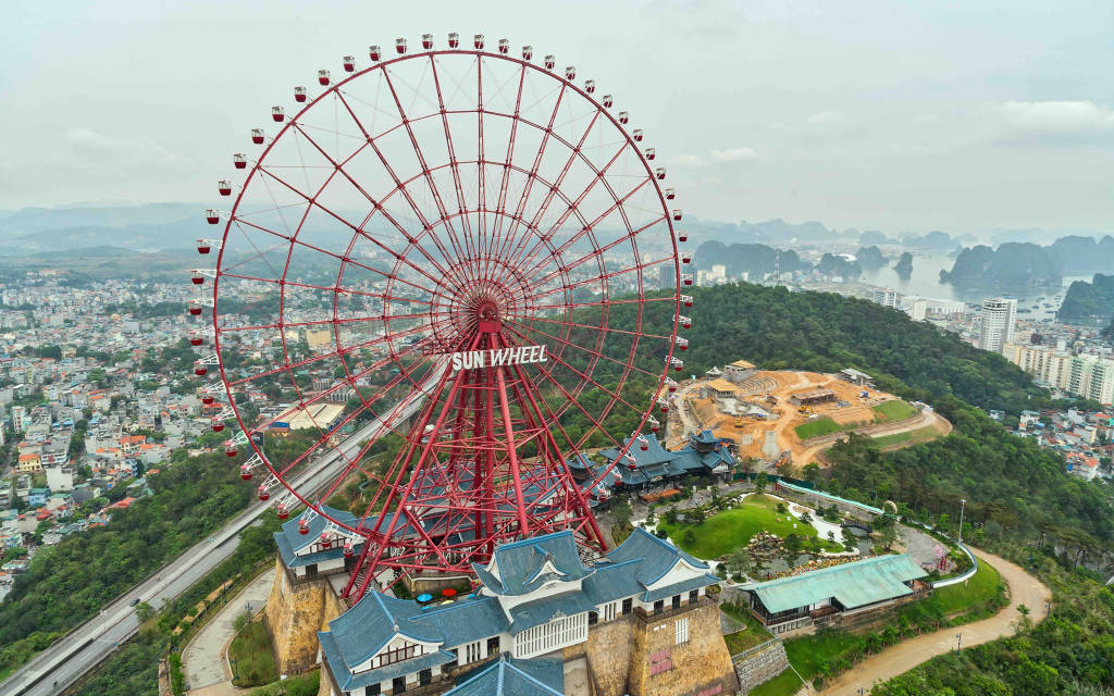 After buying tickets to visit, visitors will be able to move through Ba Deo hill by Queen cable car. Currently, this cable car route holds the world record for the cable car with the largest capacity of one cabin, the capacity allows a cabin to hold up to 230 people. In addition, this cable car also has 2 highest cable car poles in the world with the height of each pillar up to 188.8m, from this height visitors can see a part of Ha Long Bay. Coming to the cable car building on the other side of the hill, visitors are attracted by many video games, where we can find our childhood with coin games. The indoor area also has a wax gallery, all of which are modeled after life-size figures. A meeting place to take pictures of idols in the world such as: Brad Pitt, Angelina Jolie, Jackie Chan, Messi... There are also 3D houses, upside down houses, 6D cinema rooms and dining areas to serve visitors. Outside the Japanese garden is an ideal photo spot for everyone, with a striking image of the red yin and yang bridge between the top of the hill. Besides, visitors who like to play thrilling games can play speed grass skating. During the day in some time frames, there is an outdoor stage water puppet show, a traditional form of Vietnam. Finally, we can't ignore the sun wheel, which is located on a hilltop 215m above sea level, the Sun Whell is one of the highest sightseeing wheels in the world. The best time to go roundabout is probably at sunset, making the city and Ha Long Bay shimmering in the sunlight at the end of the day. This amusement park will be one of the top destinations in the trip when visitors come to Ha Long
