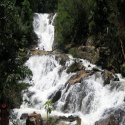Traveling along winding roads, visitors will marvel at the stunning beauty of dense forests, flowing streams, and cascading waterfalls. Thac Da is known for its constantly flowing waterfalls throughout the year, creating a breathtaking landscape that captivates every gaze. Breathing in the fresh air and listening to the sound of the waterfalls, visitors will deeply appreciate the rustic beauty of nature.