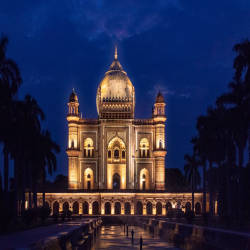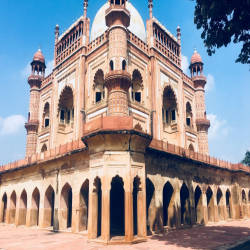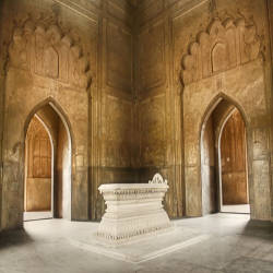 With a striking, elegant marble dome in the middle, sepia sandstone arched windows at the entrance of the main mausoleum. There are also many wonderful designs and carvings on the arch. The main entrance to the mausoleum is huge and displays exquisite decorative paintings. One can also see many unique rococo motifs delicately decorated on the walls and four pillars standing at the four corners.