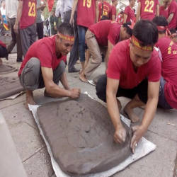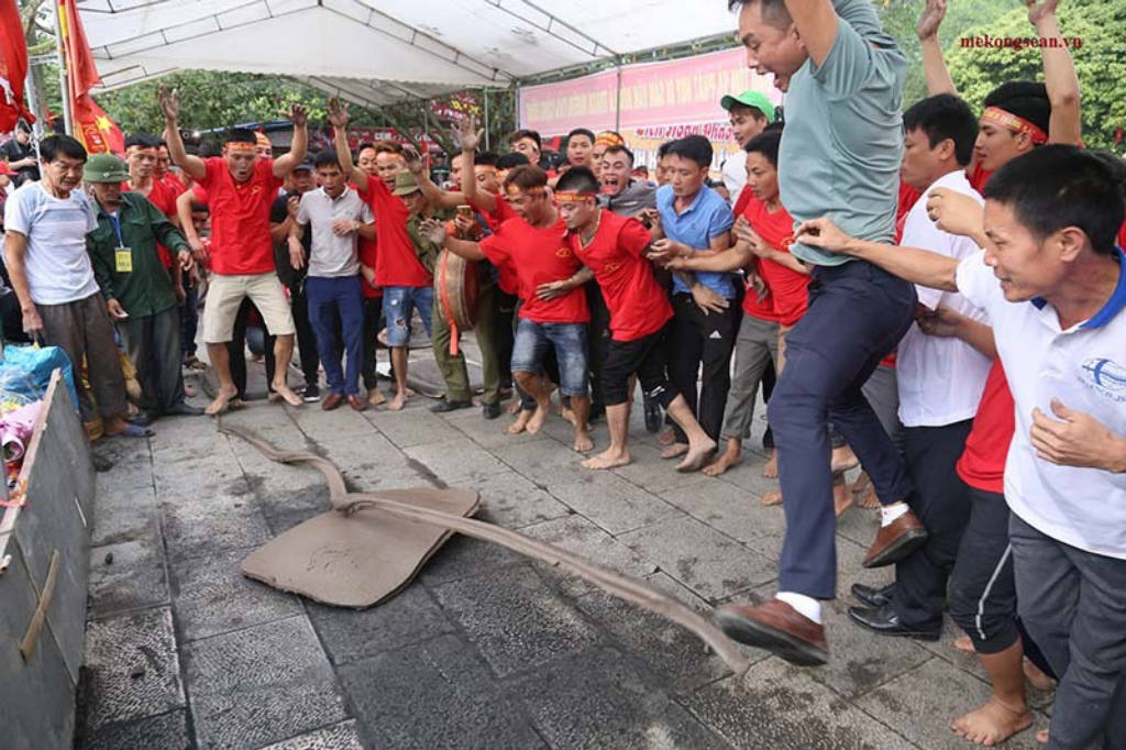 The festival is held on the 3rd of the 8th lunar month every year. The origin of the festival has many different legends. Legend has it that the festival was first held in the middle of the first century AD. Another legend says that the earth cannon festival was formed during the process when farmers built dikes to prevent floods. Or another legend says that in 1288, Tran Hung Dao's elephants, when crossing the Hoa river, got bogged down and people around used dry soil to throw down the elephant to help the elephant cross. Although the exact origin of the festival has not yet been determined, until now the festival still maintains and attracts many people to come and see. To make quality firecrackers, the participants must prepare very carefully from a few days in advance, the soil for making firecrackers must be taken from the riverbed, then cleaned and removed impurities. After that, they will dry it and then knead it with their hands until it is flexible and smooth, then it can be used to make firecrackers. The rules of the game are very simple, when the cannon bounces and falls to the ground, the bigger it explodes and the longer the wings open, the winner is the team. People divide each cannon usually 3-4 people participate in making. The cannon is shaped by the player in an elliptical shape, from 70 cm to 1 meter long, 40 cm to 60 cm wide, with a 20 kg cannon. When launching cannons, each group chooses the strongest and most skillful person to launch the cannon, the rest have the task of raising the cannon. The artillery that explodes and has the longest wings is the winner. Firework festival is an activity, a folk game with chivalry spirit, the tradition of drinking water to remember the source of the people here.