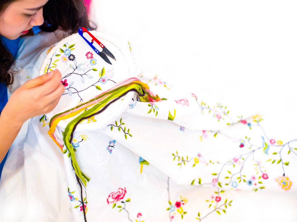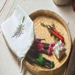 Embroidery appeared in Van Lam village in the 13th century under the Tran dynasty. In front of the village gate, there is an ancient temple dedicated to the founder of local embroidery. Van Lam people worship the embroidery craft on the 15th day of the first lunar month. According to legend, Mrs. Tran Thi Dung, the wife of the great minister Tran Thu Do, returned to the village, along with other members of the Tran royal family, and taught the local people the craft of weaving and embroidery. The first local products were clothes decorated with bird patterns, couplets and royal robes. Since then, embroidery has become popular among the locals. Van Lam's embroidery products have found their way to other regions in Vietnam and abroad. The people of Van Lam set up a temple to worship the craft ancestors to express their deep gratitude to the founder of the profession and preserve the profession.
