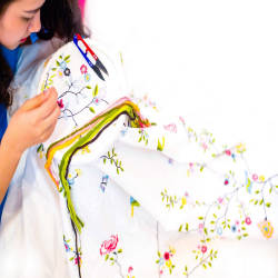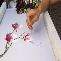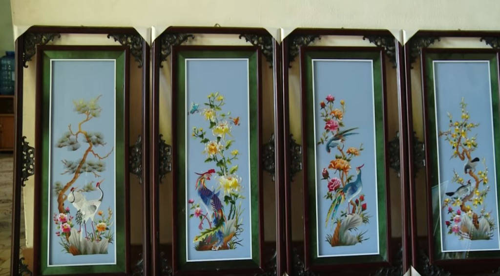 The whole village of Van Lam has nearly 700 households doing embroidery. Each house in the village is a workshop where the artisans are family members. Embroiders learned their craft from their grandparents and parents from an early age. Day by day, they gradually mastered the skills. Decorative patterns on paintings are diverse and skilled craftsmen are constantly creating new patterns for their paintings.
