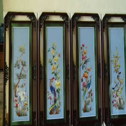Van Lam embroidery products are not only famous in Vietnam but also abroad. In recent years, these products have been exported to Japan, USA, Germany and France. Van Lam artisans are constantly creating and improving products to meet market demand. They created over 200 lace patterns and combined embroidery and lace to create stunning paintings. Because it is located very close to Tam Coc - Bich Dong tourist area, Van Lam embroidery village is visited by many tourists. In particular, foreign tourists are very interested to see how the artisans here make embroideries. Through these paintings, the embroiderer brings visitors the scenic spots and local embroidery. Decorative motifs depicting Vietnamese countryside scenes, charming Vietnamese girls, flowers on Van Lam embroidery products are the most impressive.