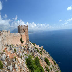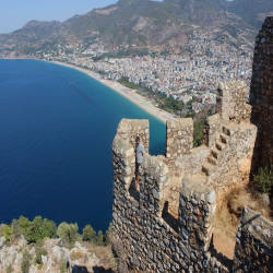 However, the first fortifications here were probably mostly built by the pirates who occupied the peninsula in the 3rd century BC and were later replaced and improved as human fortifications. Byzantine and Roman through the centuries. Seljuk Alanya Castle is the newest castle still standing today. Located at 250m above sea level surrounded by its walls measuring 6.5km in length, the castle once had 140 towers along the walls and around 400 cisterns inside.