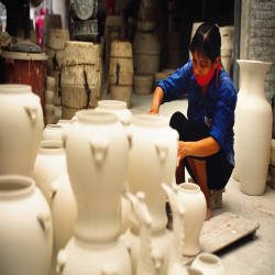 Besides the traditional cultural features, Bat Trang village festival is also an opportunity to promote and introduce Bat Trang Pottery products through visitors. Therefore, coming to the association, visitors can also admire the delicate ceramic products made by the talented hands of the artisans here.