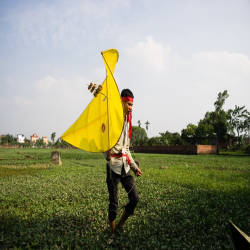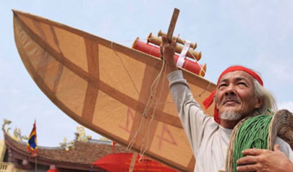 The kite-flying contestant starts preparing from the 8th lunar month of the previous year. Villagers have to prepare bamboo for kite making, flute and 800 to 1,200 meters of string for kite flying. A kite usually flies to an altitude of 500 to 600 meters. The winning kite should fly higher than the clouds. At that height it was just a small speck in the sky. The flute sound should be clear and rhythmic like an air symphony.