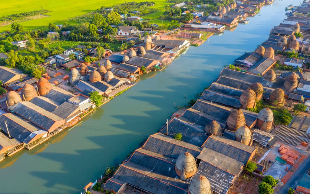 You can also explore the brick village by bicycle, marvel at the ancient red kilns, learn about the unique traditional brick-making process, and discover the distinctive architectural heritage of this Mekong Delta region.