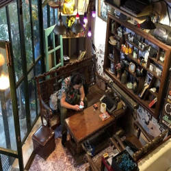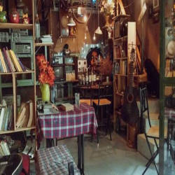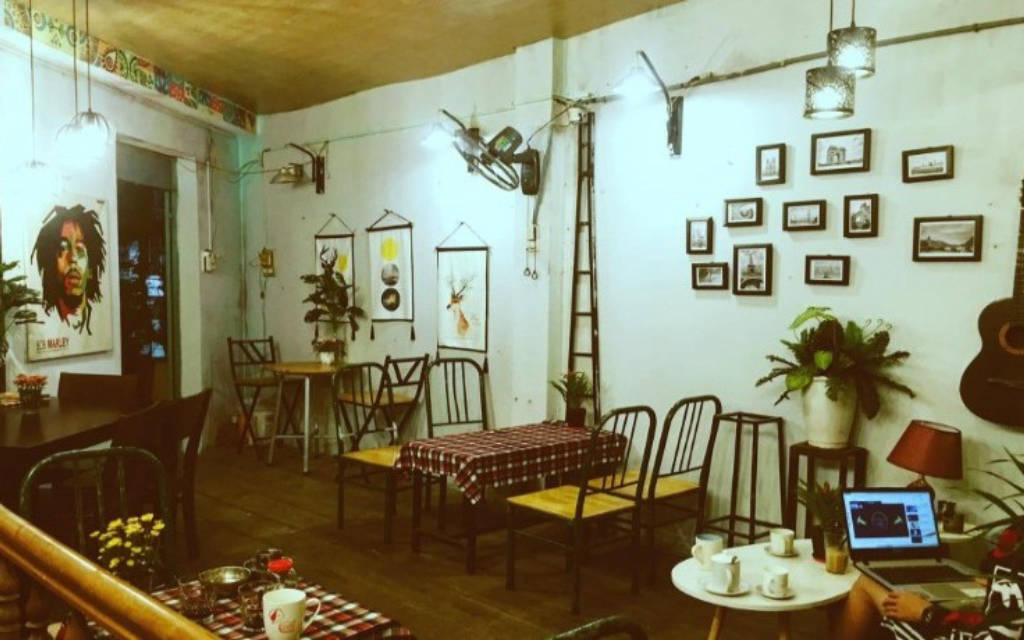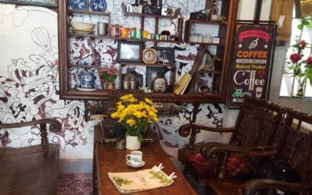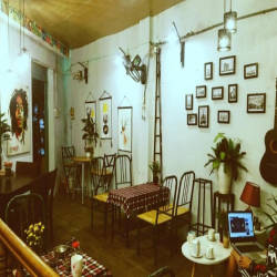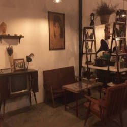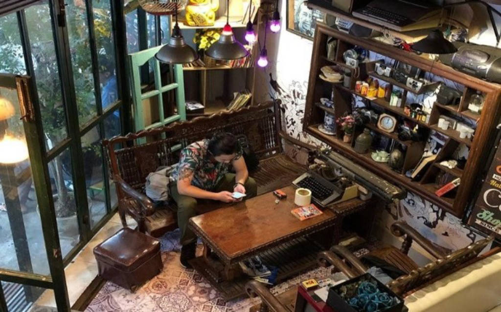 Khi bước vào quán tại tầng 1, bạn sẽ phải choáng ngộp với khối lượng đồ cổ từ những chi tiết nhỏ nhất. Không gian trầm lắng hẳn đi không còn ồn ào, hối hả như bên ngoài đường phố. Những bộ bàn ghế bằng gỗ với nhiều kích thước khác nhau và có thâm niên được chủ quán tìm tòi và bố trí ở những không gian khác nhau. Từ chiếc bàn chữ nhật được trải lên tấm khăn caro kiểu ngày xưa,giá sách hay cả những cuốn sách đều mang hơi hướng của thập niên trước khiến bạn tò mò hơn. Không gian được bao phủ bởi ánh đèn vàng mờ ảo càng làm tăng thêm sự hoài cổ.