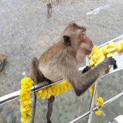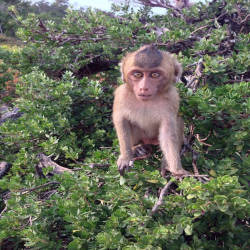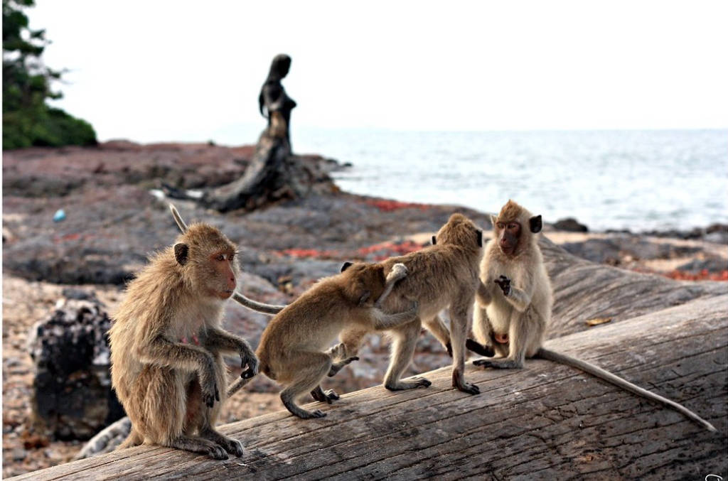 Current inhabitants are crab-eating macaques, also known as long-tailed macaques and locally as Ling Samae ('Ling' means monkey and 'Samae' is a type of crab). The numbers had grown so large, fed by frequent visitors, that the Royal Thai Navy had to provide food aid during off-season to prevent mass starvation. The monkeys are so used to tourists that they often swim out to meet the approaching boats, eager to get the fruit that most visitors bring with them.